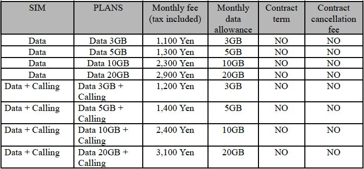 ● Each plan has a designated amount of available data or a defined period of high-speed data usage. Please refer to the attached information sheet for further details.