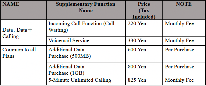● Customers subscribing to a voice call or SMS plan may use SMS (Short Message Service), but MMS (Multimedia Messaging Service) is not supported.